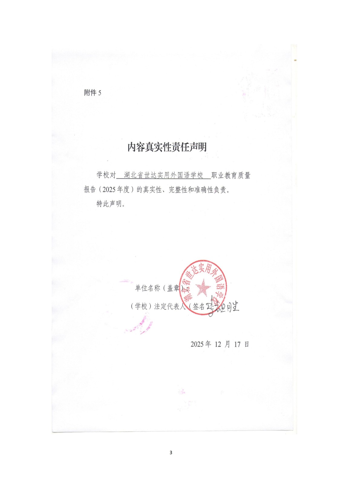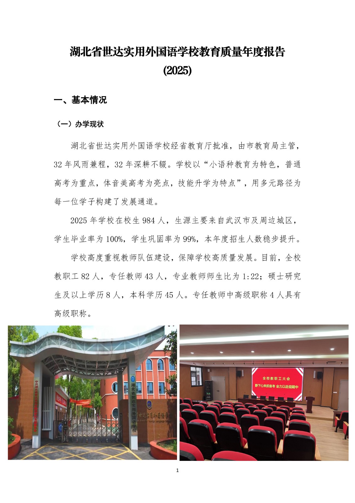 湖北省世达实用外国语学校质量年度报告